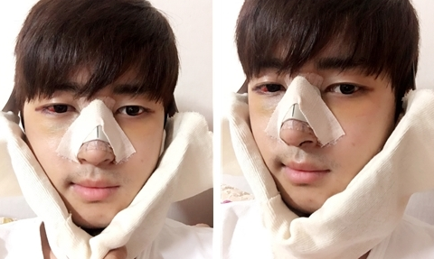 I removed the taping on chin about 1 week before and removed the splint on nose and stitches outside of the face at the clinic 1 week after.
