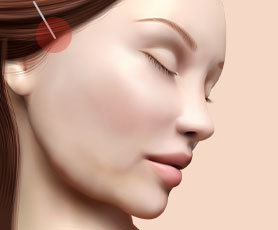 ใส่ไหมเข้าไปจากบริเวณไรผมเหนือหู