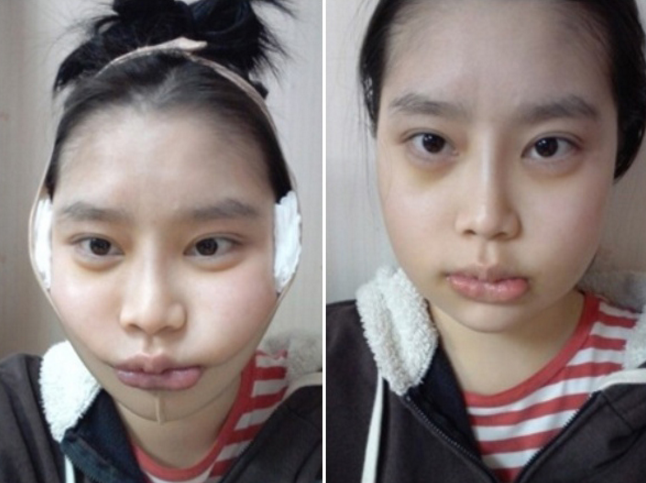 No make-up in both photos, and see the difference in slimmer face in the after photo?