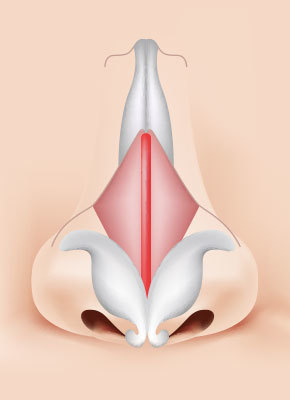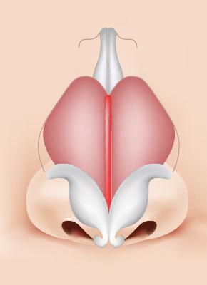 กระดูกจมูกจะถูกรวบเข้าด้านในเพื่อทำให้
